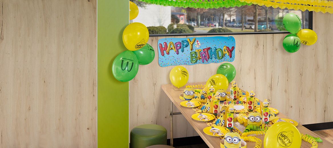 Die MINI Party rundet den Kindergeburtstag perfekt ab! Egal ob zuvor im Zoo, Schwimmbad oder Kino gefeiert wurde – den krönenden Abschluss gibt es mit einem Happy Meal®-Essen bei McDonald’s am liebevoll dekorierten Mottotisch. Als Nachspeise darf selbstverständlich ein Geburtstagskuchen nicht fehlen und natürlich gibt es Geschenke für das Geburtstagskind und die Gäste.